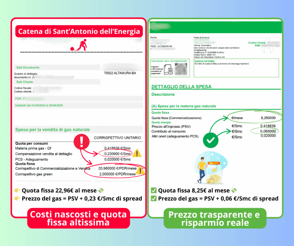 Negli ultimi anni molte famiglie e imprese hanno ricevuto offerte per luce e gas presentate come “convenienti” o “innovative”. Una delle più diffuse è la cosiddetta “Catena di Sant’Antonio dell’energia”, che promette bonus e vantaggi se porti un amico o un conoscente a sottoscrivere lo stesso contratto.